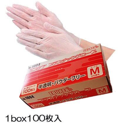 塩化ビニール極薄手袋M【100枚×10個】#1004半透明,パウダーフリー,左右兼用 EBUNO