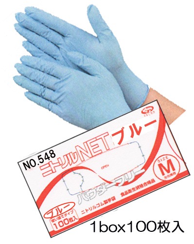 ニトリル極薄手袋(M)100枚入×5個入,#548ブル-左右兼用,合成ゴム,パウダーフリー,EBUNO