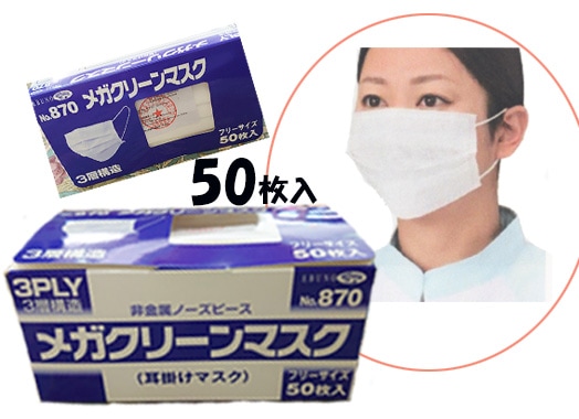 メガクリーン不織布マスク3層50枚×10個入#870,耳掛け,介護 医療機関,給食,飲食店 作業用 EBUNO