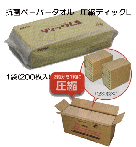 抗菌ペーパータオルサイズ220×225mm(200枚入),30袋入/60袋入 圧縮タイプ