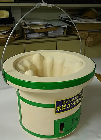 木炭コンロ丸形シチリン,珪藻土,丸形木炭七輪,ツル付,新品 1個箱入